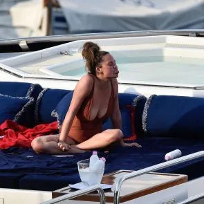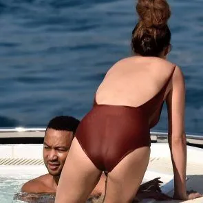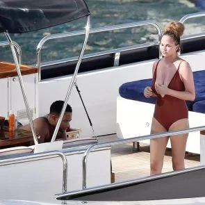 Viņai ir vīrietis, kurš viņu mīl, divi perfekti bērni, nevainojams ķermenis, lielas krūtis un skaista seja! Ko vēl sieviete varētu lūgt? Šodien mēs sagatavojām lielu kolekciju Chrissy Teigen bikini bics no Portofino, Itālijas galamērķa, kas ir populārs starp slavenībām. Ja jūs nebijāt Portofino, vai jūs pat esat slavenība? Lielākā daļa prostitūtu un Holivudas modeļu izmanto šo ceļojumu, lai būtu bezkrāsains un parādītu pasaulei, ko viņi piedāvā. Diemžēl Chrissy šoreiz nebija bez augšdaļas, bet viņa parādīja savu lielisko figūru un krūtis dziļā dekoltē viengabala peldkostīmus.